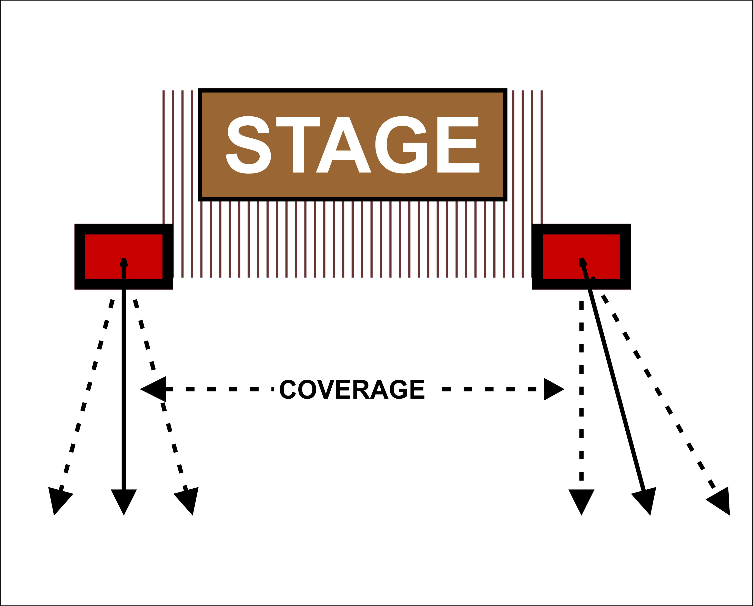 “Think of a speaker as pivoting from side to side on its vertical axis and tilting up and down on its horizontal axis. The spot directly in front of the speaker (on-axis or at 0 [zero] degrees) serves as the point of reference in discussions of coverage angles and/or sensitivity.” He continues, “A speaker’s angle of dispersion is measured in comparison to both its horizontal and vertical axes. Coverage angle describes the area blanketed by the sound pressure waves produced by a speaker. The edges, or limits, of the area are defined by a 6 dB drop-off in sound pressure from on axis.