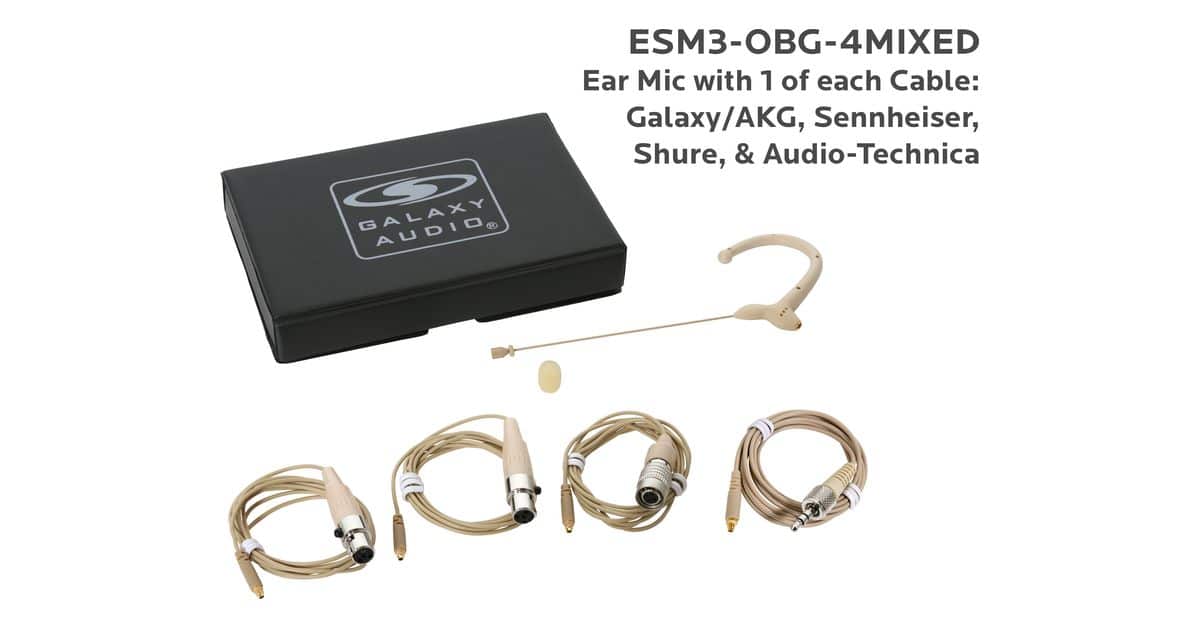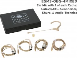 ESM3-OBG-4MIXED:Beige Omni-Directional Ear Mic: Includes (1) Single Ear Mic, (4) Beige Mixed Connector Cables [1 Audio-Technica, 1 Galaxy Audio/AKG, 1 Sennheiser, 1 Shure], (1) Windscreen, and (1) Case |