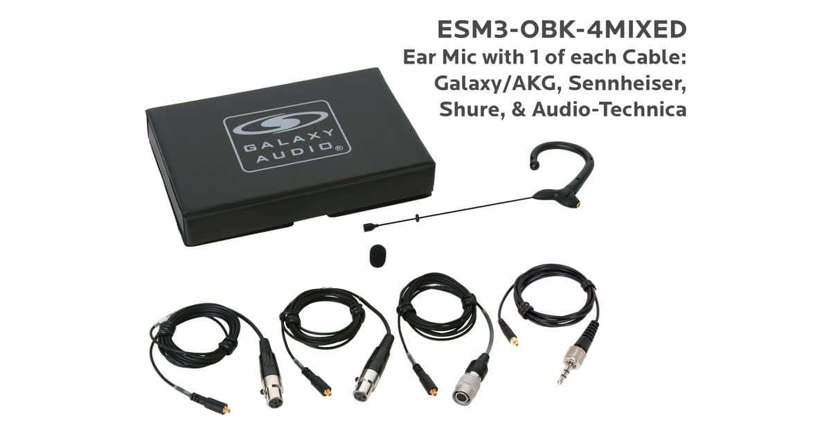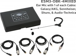 ESM3-OBK-4MIXED:Black Omni-Directional Ear Mic: Includes (1) Single Ear Mic, (4) Black Mixed Connector Cables [1 Audio-Technica, 1 Galaxy Audio/AKG, 1 Sennheiser, 1 Shure], (1) Windscreen, and (1) Case |