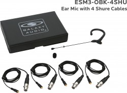 ESM3-OBK-4SHU:Black Omni-Directional Ear Mic: Includes (1) Single Ear Mic, (4) Black Shure Connector Cables, (1) Windscreen, and (1) Case |