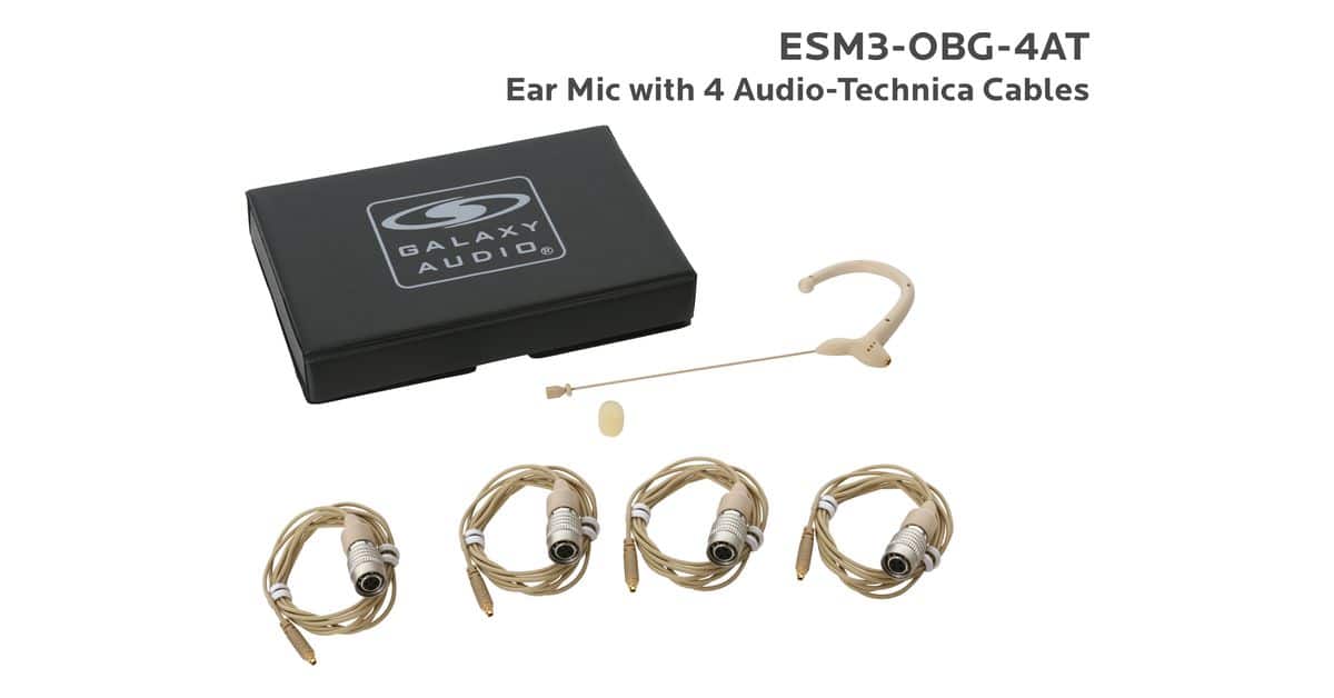 ESM3-OBG-4AT:Beige Omni-Directional Ear Mic: Includes (1) Single Ear Mic, (4) Beige Generation 1 cW Audio-Technica Connector Cables, (1) Windscreen, and (1) Case |