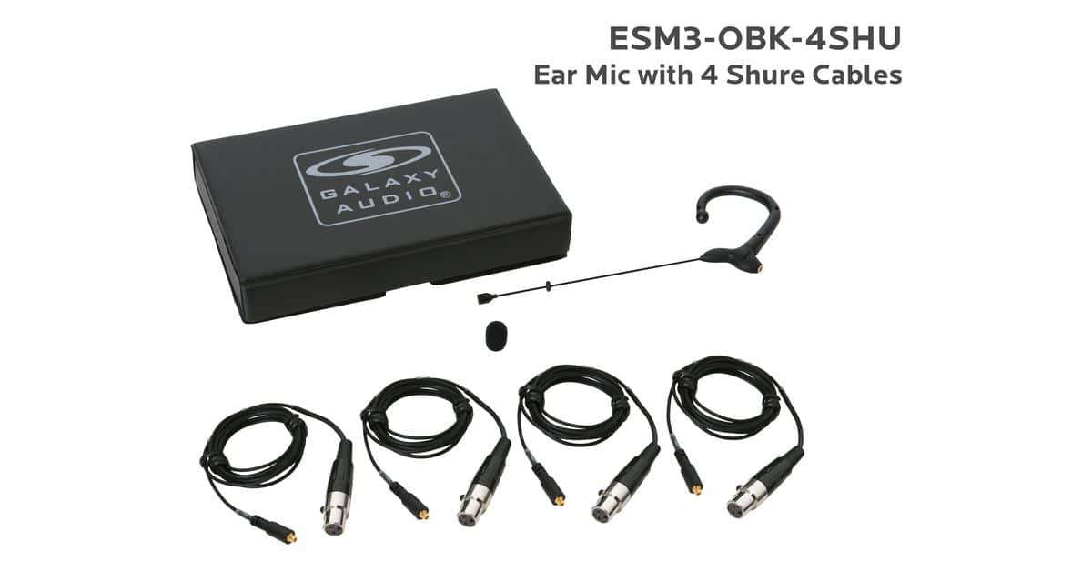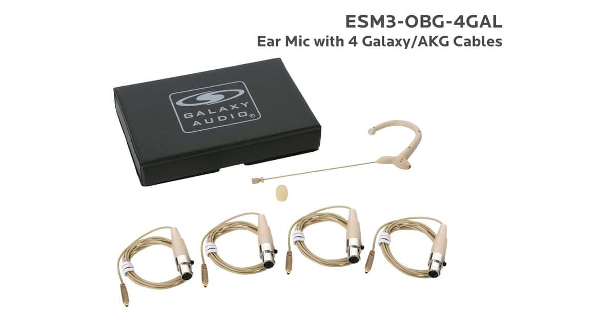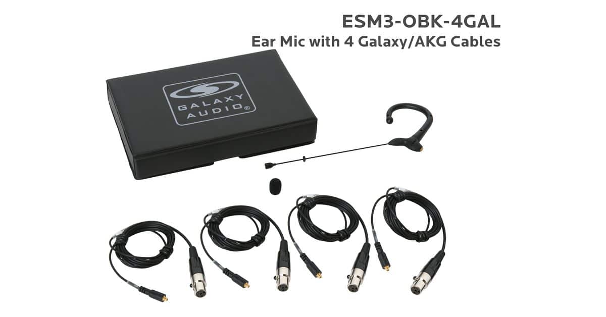 ESM3-OBK-4GAL:Black Omni-Directional Ear Mic: Includes (1) Single Ear Mic, (4) Black Galaxy Audio/AKG Connector Cables, (1) Windscreen, and (1) Case |