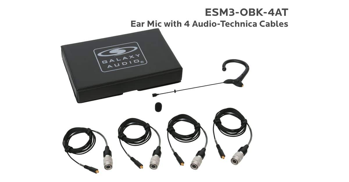 ESM3-OBK-4AT:Black Omni-Directional Ear Mic: Includes (1) Single Ear Mic, (4) Black Generation 1 cW Audio-Technica Connector Cables, (1) Windscreen, and (1) Case |