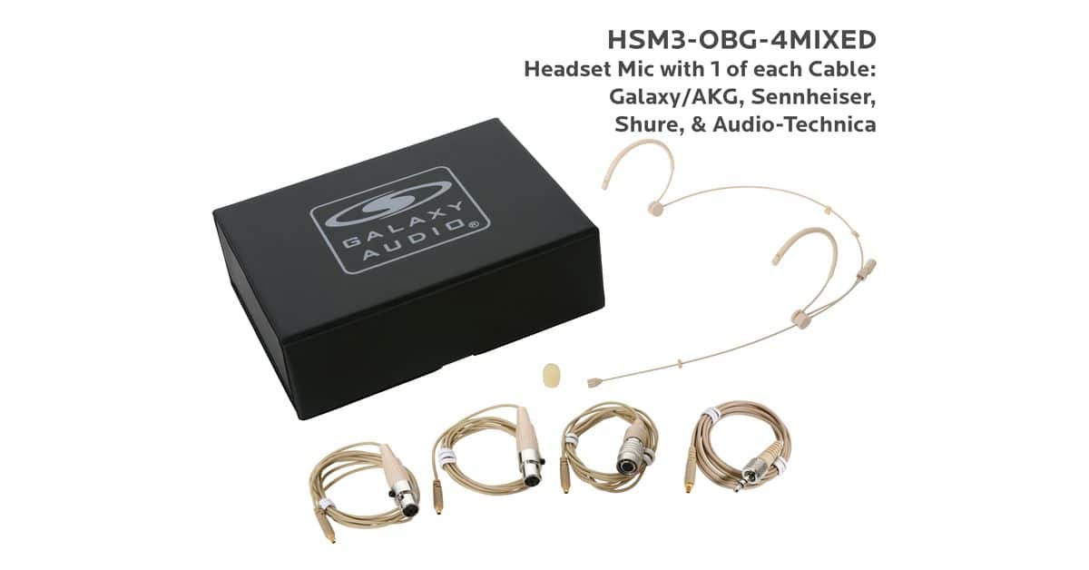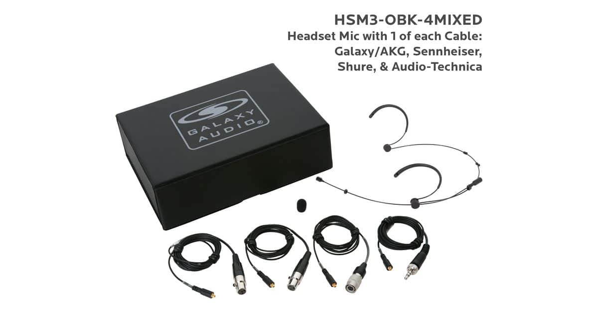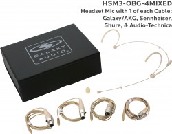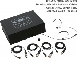 HSM3-OBK-4MIXED:Black Omni-Directional Headset Mic: Includes (1) Dual Ear Headset Mic, (4) Black Mixed Connector Cables [1 Audio-Technica, 1 Galaxy Audio/AKG, 1 Sennheiser, 1 Shure], (1) Windscreen, and (1) Case |