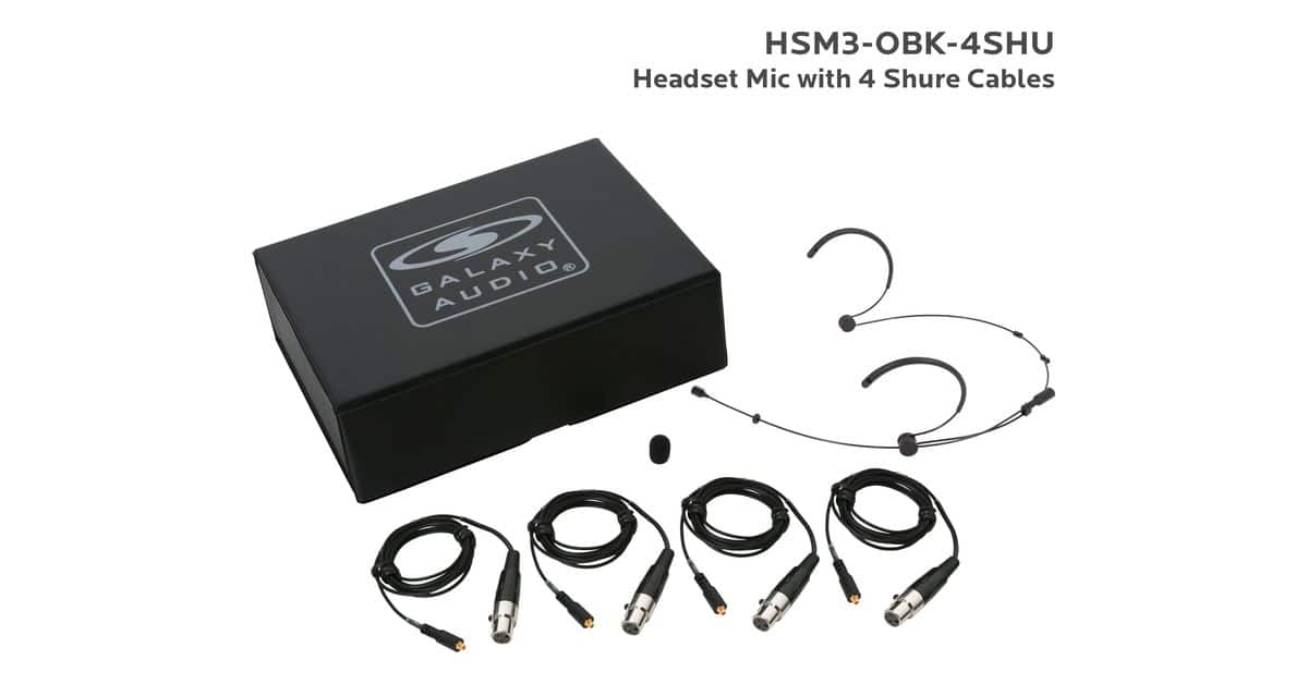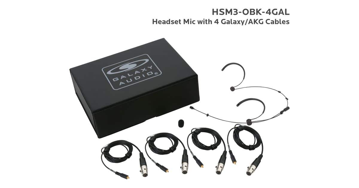HSM3-OBK-4GAL:Black Omni-Directional Headset Mic: Includes (1) Dual Ear Headset Mic, (4) Black Galaxy Audio/AKG Connector Cables, (1) Windscreen, and (1) Case |
