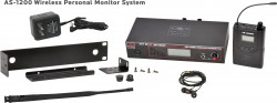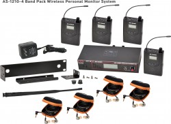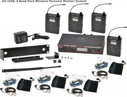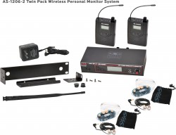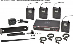 Available options include the AS-1200-2 Twin Pack with two receivers and one transmitter or the AS-1200-4 Band Pack system with four receivers and one transmitter, providing multiple performers a shared monitor mix.