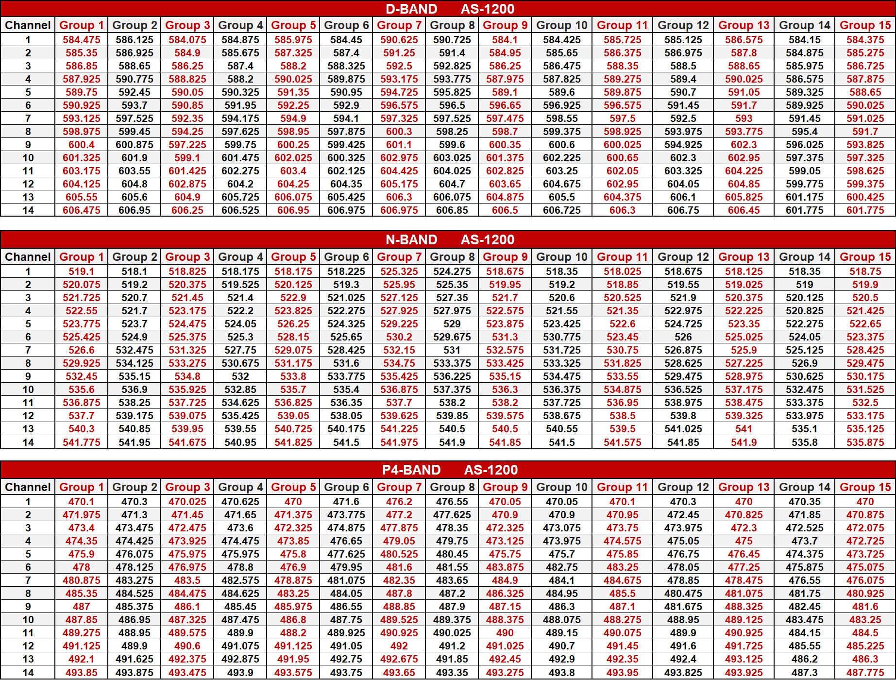 CODE N 518 MHz – 542 MHz,