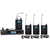 210 selectable channels, includes (1) AS-1200T, (4) AS-1200R, (4) EB10 ear buds, single/dual rack kit, antenna, and power supply.