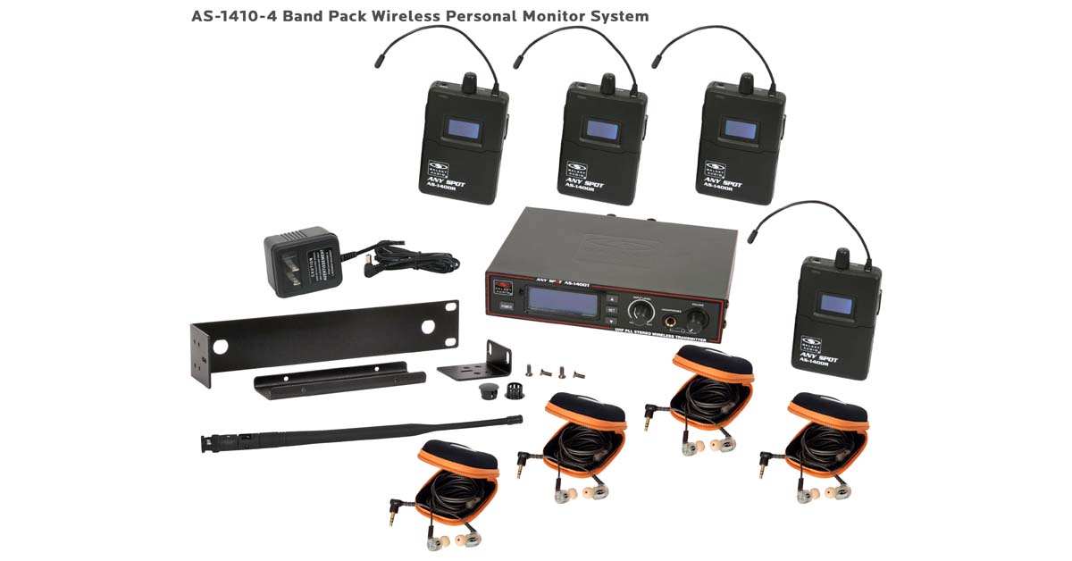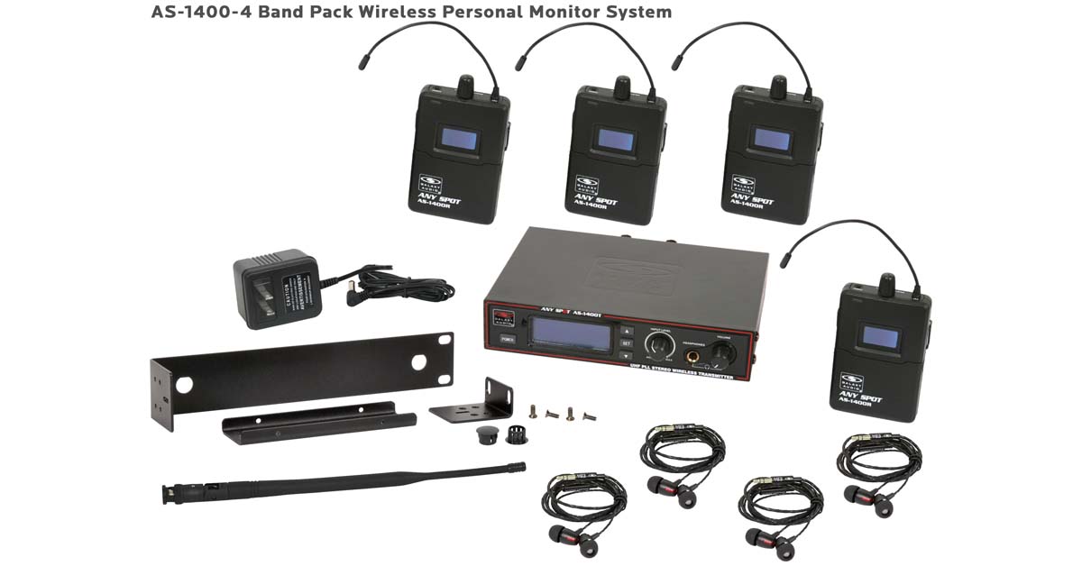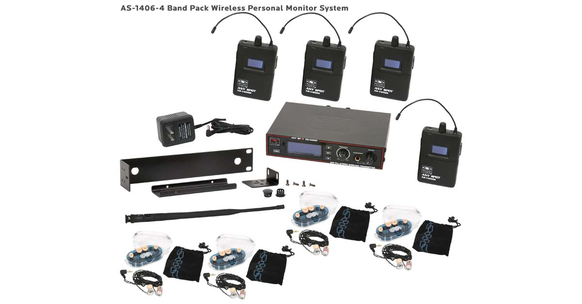 Band Pack gives you 4 body pack receivers and 4 sets of EB4 earbuds for bands needing to outfit four members to a professional in-ear monitoring system. AS-1400-4 Wireless In-Ear Monitor Band Pack System includes (1) AS-1400T Transmitter, (4) AS-1400R Receivers, (4) EB4 earbuds, single/dual rack kit, antenna, and power supply.