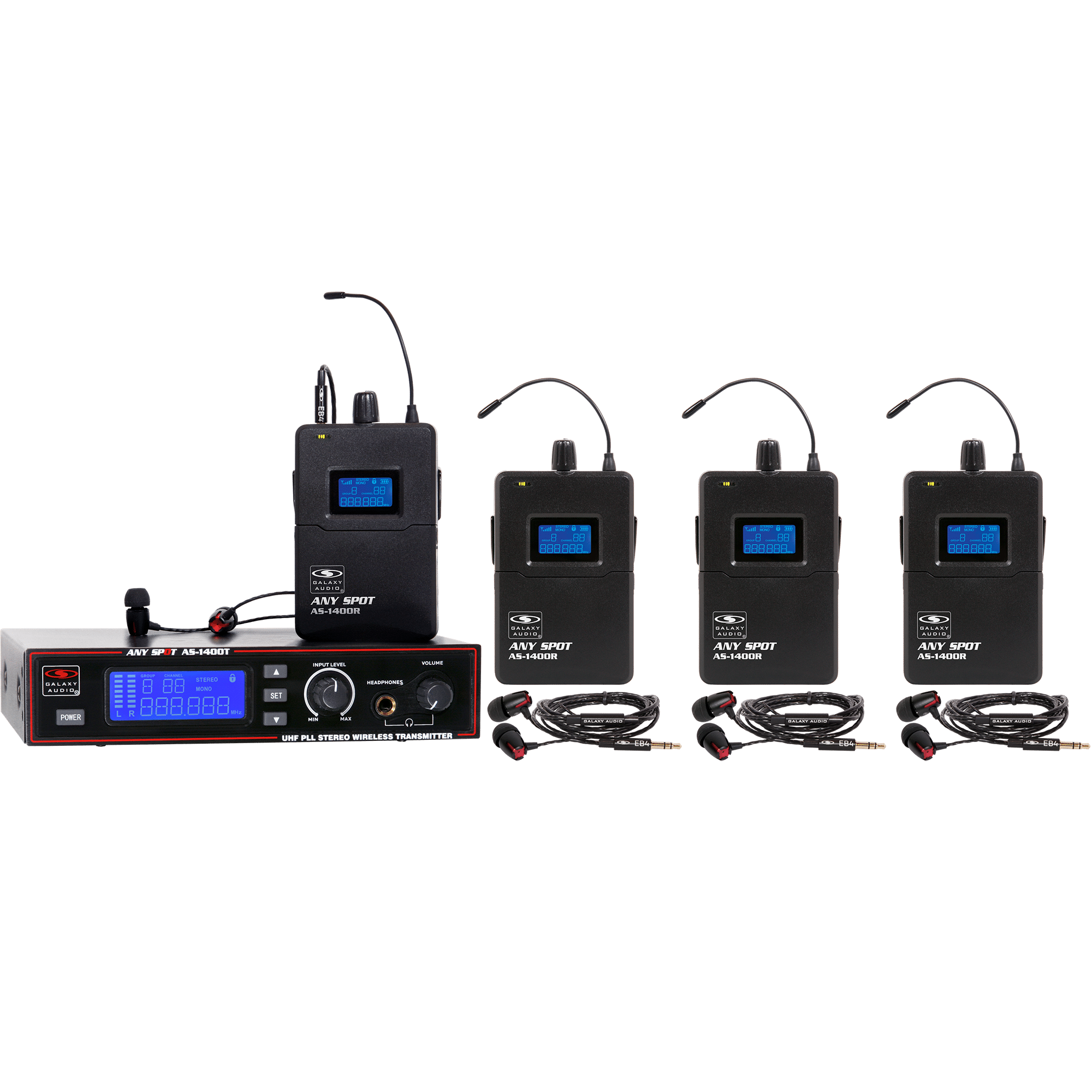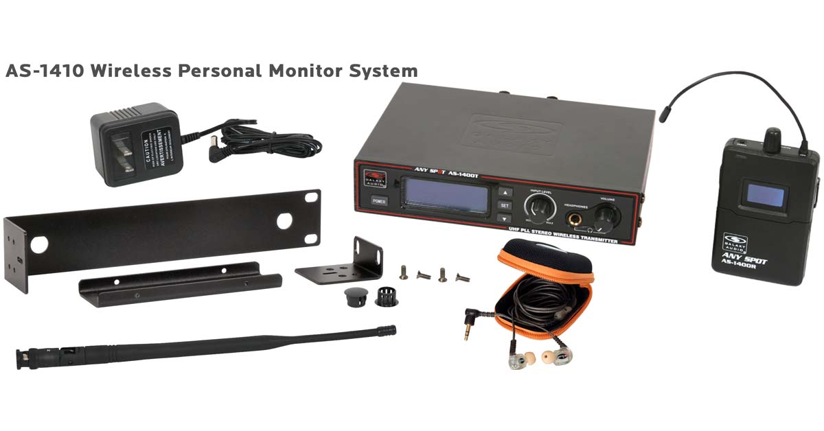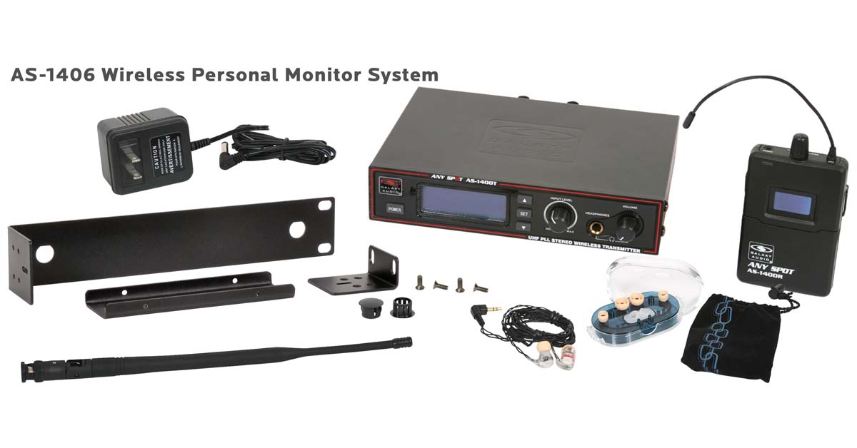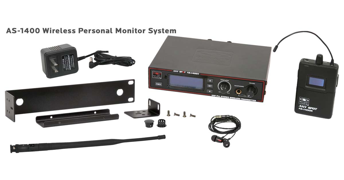 The Galaxy Audio AS-1400 Twin Pack and Band Pack IEM Systems make it easy for any duo or band to Get Personal. The AS-1400-2 Twin Pack IEM system includes two receivers and one transmitter. The AS-1400-4 Band Pack system includes four receivers and one transmitter.