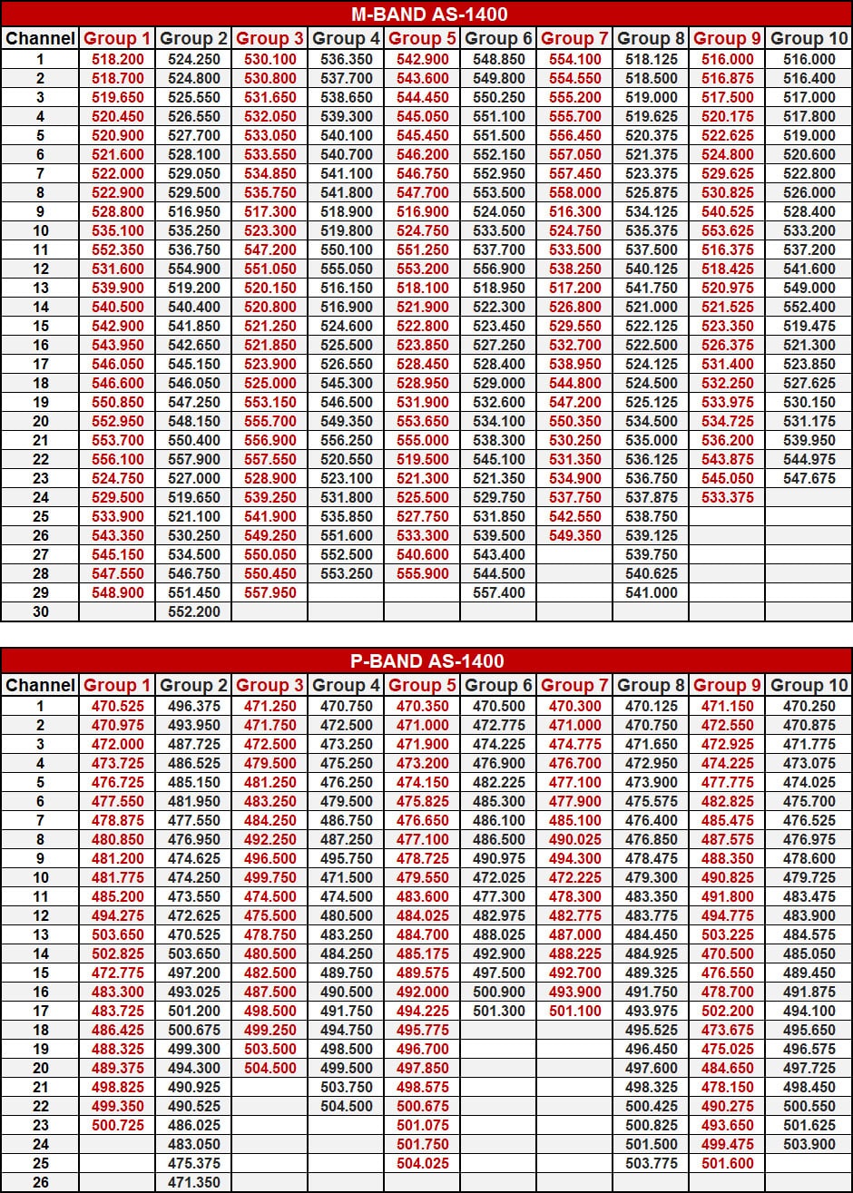 Frequency Range CODE M 516 MHz – 558 MHz