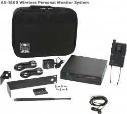 AS-1800 Wireless In-Ear Monitor with Standard EB4 Ear Buds:640 selectable frequencies; 32 selectable channels, includes 1 AS-1800T, 1 AS-1800R, EB4 ear buds, single/dual rack kit, antenna, two 1/4″ to 1/4″ cables, nylon case, and power supply. Additional products in this configuration: |