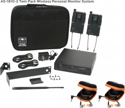 AS-1810-2 Wireless In-Ear Monitor Twin Pack System with EB10 Ear Bud Upgrade:640 selectable frequencies; 32 selectable channels, includes (1) AS-1800T, (2) AS-1800R, (2) EB10 ear buds, single/dual rack kit, antenna, two 1/4″ to 1/4″ cables, nylon case, and power supply. Additional products in this configuration: |