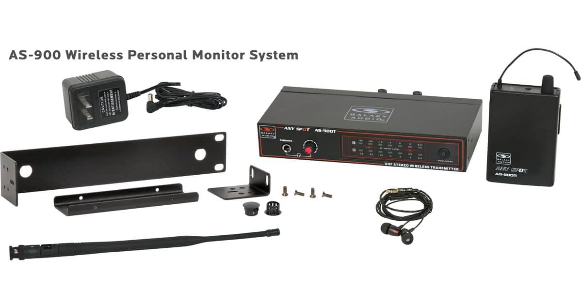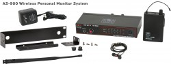 AS-900 Wireless In-Ear Monitor with Standard EB4 Ear Buds:Fixed UHF frequency options, includes 1 AS-900T, 1 AS-900R, EB4 ear buds, single/dual rack kit, antenna, and power supply. Additional products in this configuration: |