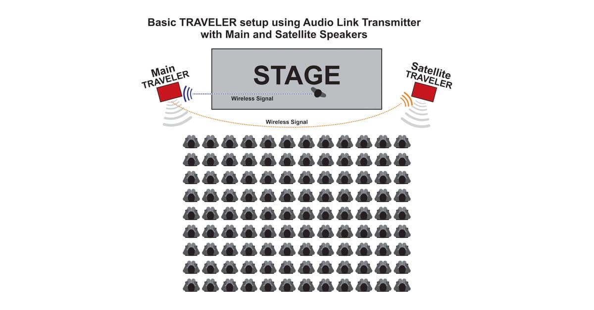 Transmitter Module for Transmitting to Multiple Traveler Satellite Speakers.