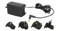 Universal Power Adaptor. The AS-UA12-14.5 supplies 12V DC at 1000mA to Our Wireless Microphone & Monitor systems such as the DHT, DHX, DHTRQUAD, DHXR4, PSE, ECM, ECD, EDX, AS-900, Galaxy Audio AS-1100 & AS-1800 using the common 5.5mm barrel plug with center positive. The universal AC power adaptor comes with 4 different AC plug adaptors, and will accept any input voltage from 100 to 240v AC, 50-60Hz, which means it will work in nearly every country on the planet.