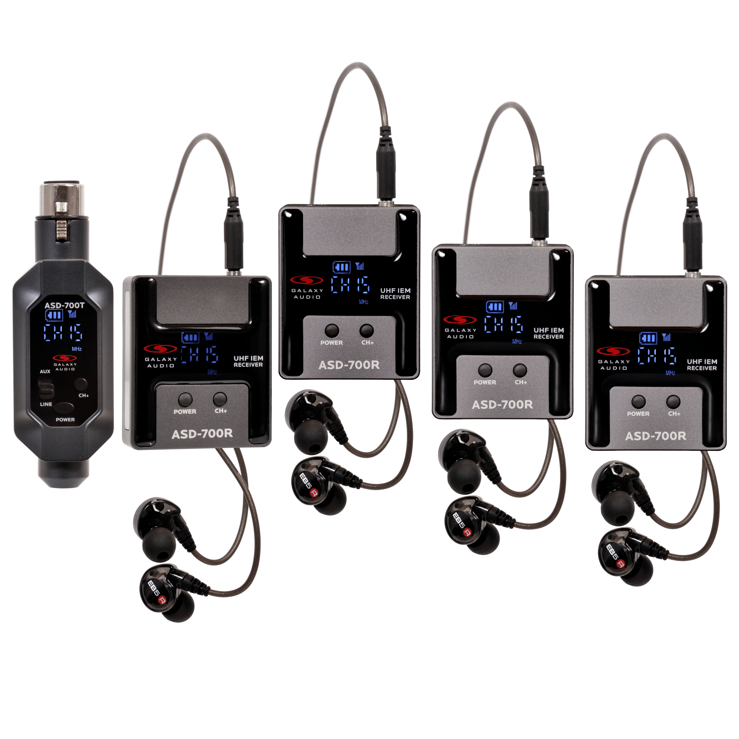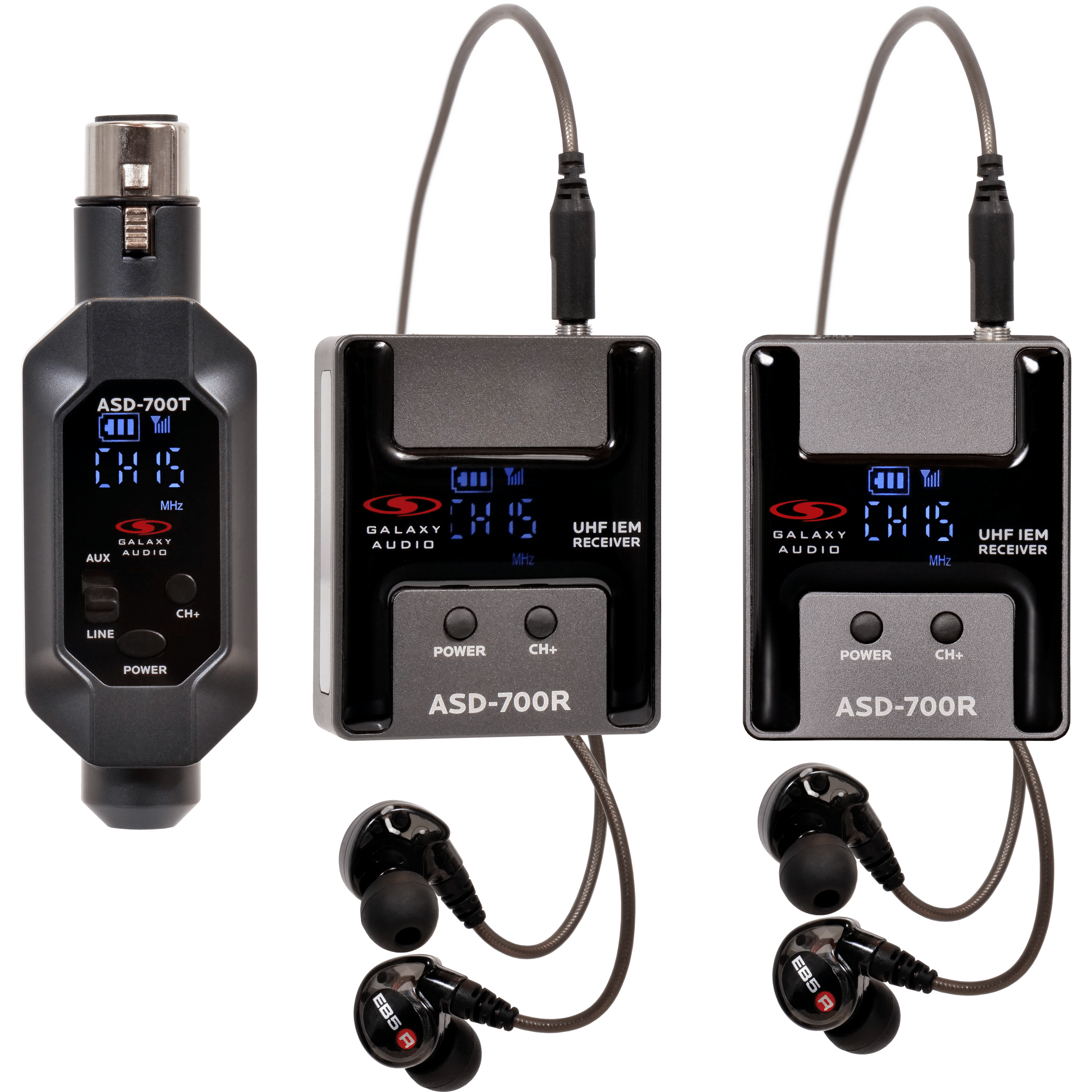 Introducing the Galaxy Audio ASD-700 Plug and Play Digital UHF Wireless In-Ear Monitor System—your ideal solution for a reliable, ultra-compact wireless IEM system designed to meet the needs of performers on the move. With 15 UHF channels, this affordable in-ear monitor system is small enough to fit in your pocket yet powerful enough to deliver a pristine personal mix that is easy for a band on the move to set up and perform at their best.