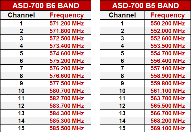 Frequency Range: CODE B5 550-569MHz, Frequency CODE B6 571-585MHz