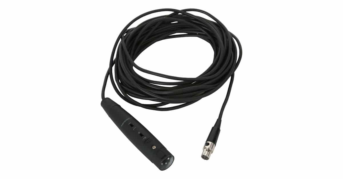 The flexible light weight carbon boom makes remote miking easy. The included mini XLR to XLR cable has a recessed 10dB pad and 80Hz Low Frequency Roll Off Switch.