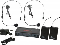 ECDR/38SSHeadset Microphones: Uni-Directional. This system includes the ECDR Receiver, 2 MBP38 Body Pack Transmitters, and 2 HS13-UBK Headset Microphones. |