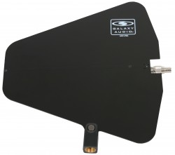 The UHF wide-band (500-900 MHZ) directional LPDA (log periodic dipole array) antenna reduces outside interference while providing increased send/receive signal range. Each antenna paddle is matched to 50 ohms impedance with a low-loss BNC connector; 7dBi gain. Professional wireless antenna for permanent or temporary installation; mounts to 5/8″-27 threads.