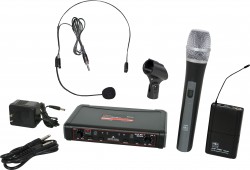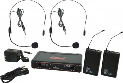Headset Microphones: Uni-Directional. This system includes the EDXR Receiver, 2 MBP38 Body Pack Transmitters, 2 HS13-UBK Headset Microphones, 1/4″ to 1/4″ cable, and Power Supply