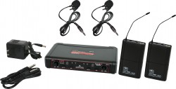 Lavalier Microphones: Uni-Directional. This system includes the EDXR Receiver, 2 MBP38 Body Pack Transmitters, 2 LV13-UBK Lavalier Microphones, 1/4″ to 1/4″ cable, and Power Supply
