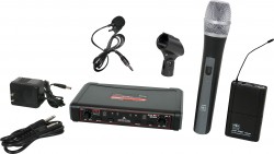 Lavalier & Handheld Microphone: Uni-Directional. This system includes the EDXR Receiver, the HH38 Handheld Transmitter, the MBP38 Body Back Transmitter, the LV13-UBK Lavalier Microphone, 1/4″ to 1/4″ cable, and Power Supply