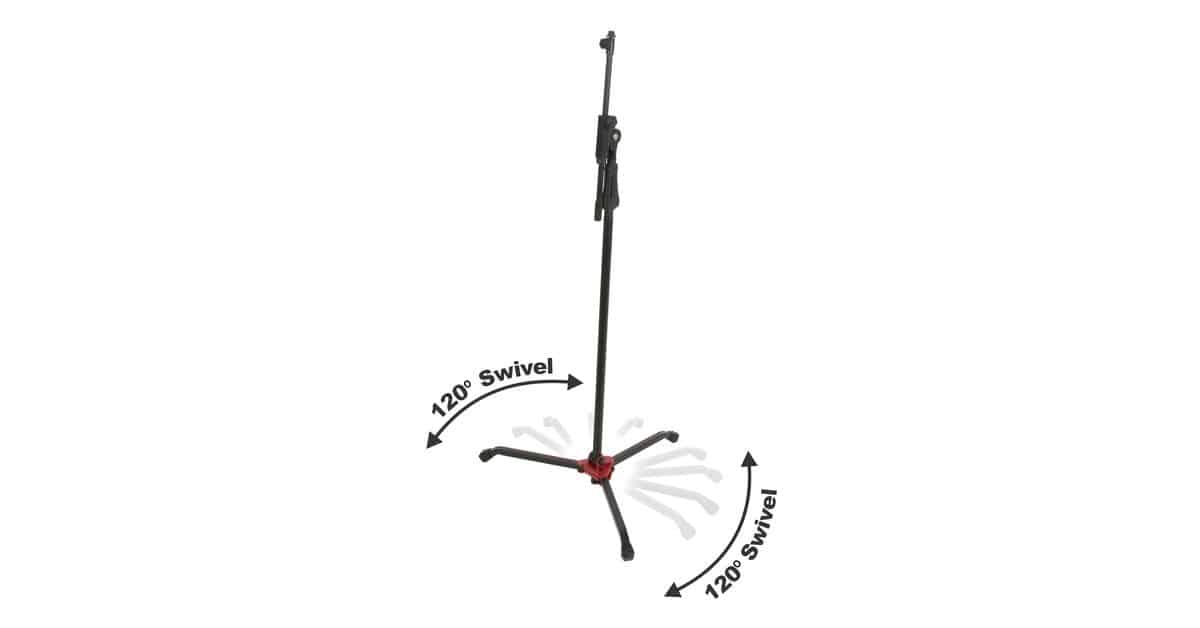 5. Swivel tripod legs allow you to place the stand against a floor wedge, kick drum, guitar amp, etc. The swivel legs also work great for added stability, especially when using the Tilt feature.
