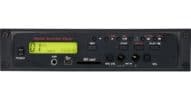 One Galaxy Audio RM-DIGIREC, digital recorder, can be installed into the RM2, rack mount chassis along with one of the other modules. The RM-DIGIREC records to 44.1KHz MP3 format. The unit has an internal Flash memory, which will record about 2 hours of Stereo audio. An SD card can also be inserted (up to a 1 GB) for longer record time (about 16 hours of stereo audio). The front panel of the unit has two ¼” Mic level inputs for recording from the front. Also located on the front panel are all function selection buttons (play, pause, stop, repeat, etc.)