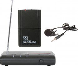 Wireless Lavalier System: Cardoid Polar Pattern, 9.68mm Condenser Element, 37″ (94cm) Cable with 3.5mm threaded, Tie Clip, Windscreen. This system includes the VESR Receiver, the MBP18 Body Pack, and a lavalier.