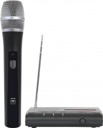 Wireless Hand Held System: Low Battery LED, On/Off Switch, Dynamic Cardoid. This system includes the VESR Receiver, the HH18 Dynamic Handheld Transmitter, and a power supply.