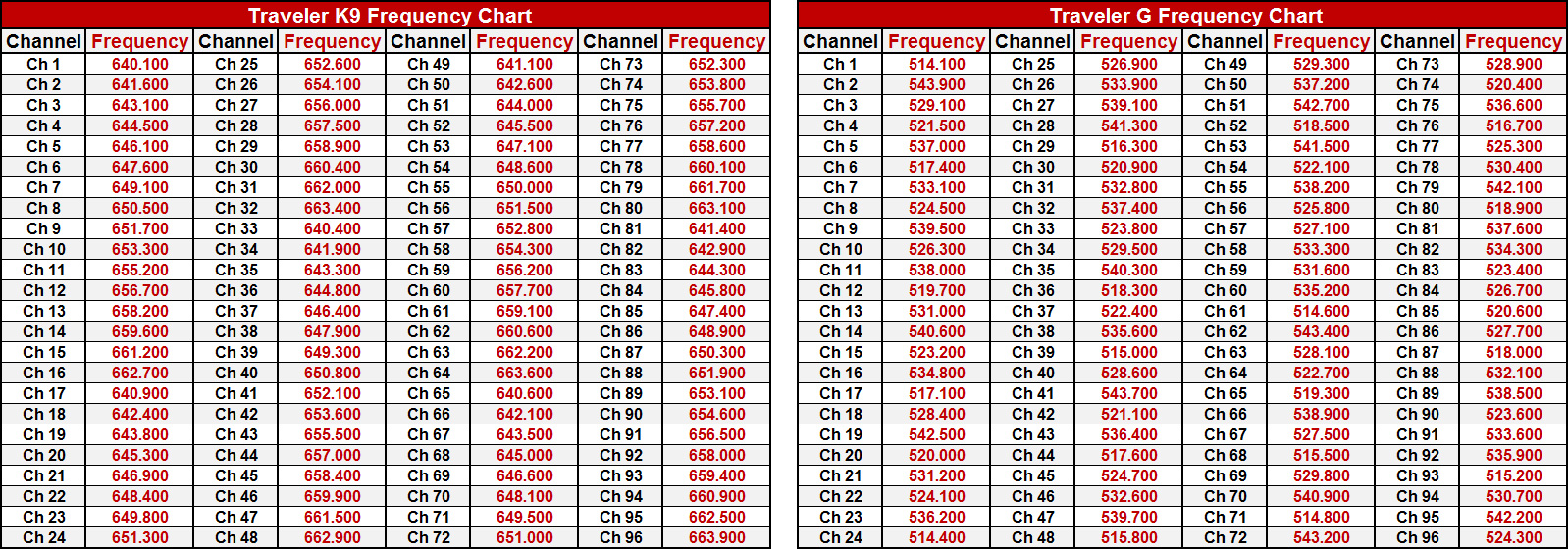 TRC – Code D & L Frequency Chart PDF 0.1MB